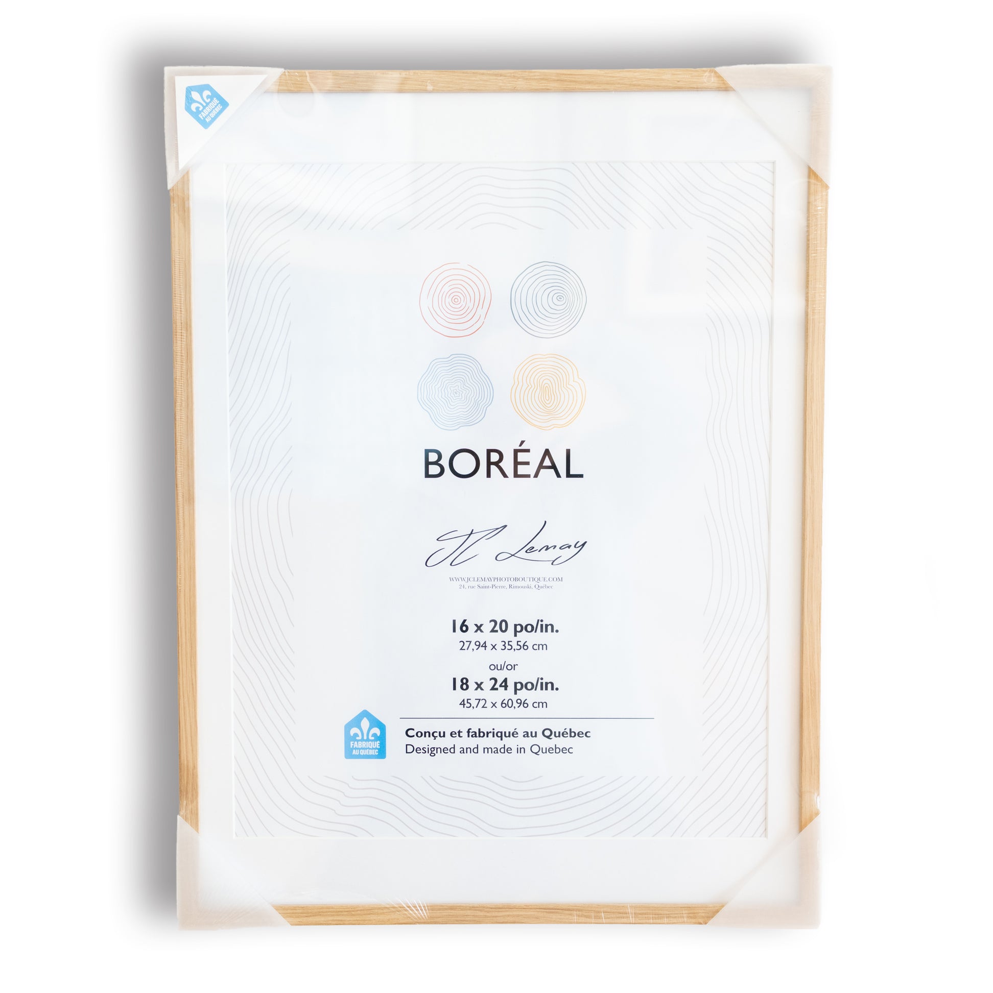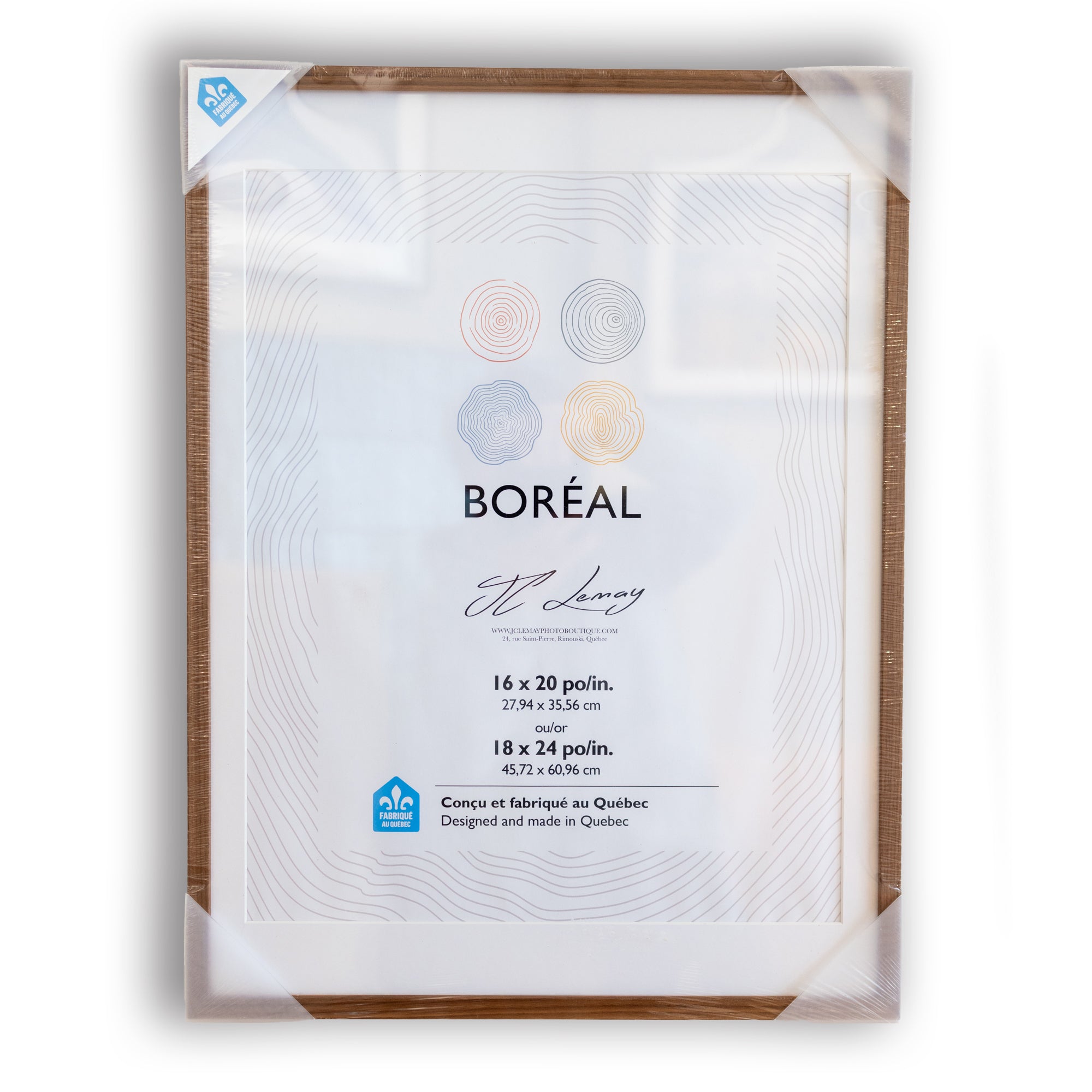 Moulure : vrai bois, fabriqué au Québec. Disponible en bois naturel ou bois foncé.