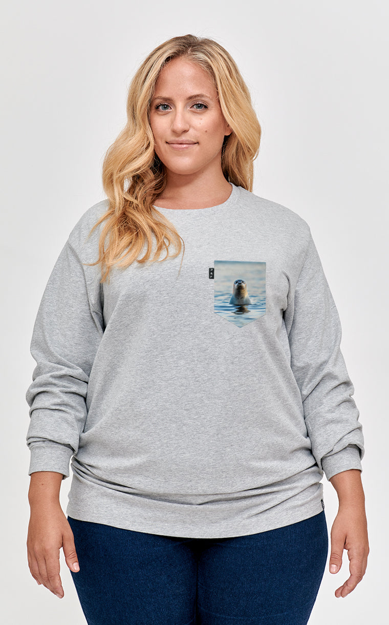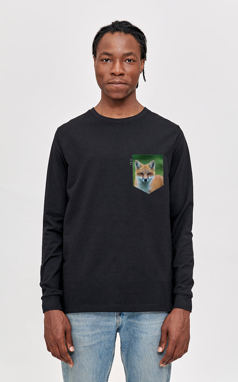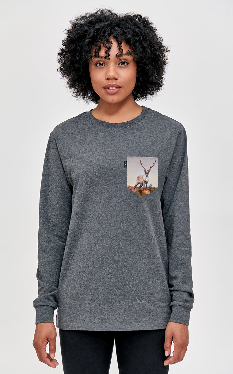 • Poches & Fils X JC Lemay Photo / Unisex fit long sleeve pocket T-shirt featuring a photo of a nowy owl photographed in Rimouski, Quebec, Canada.