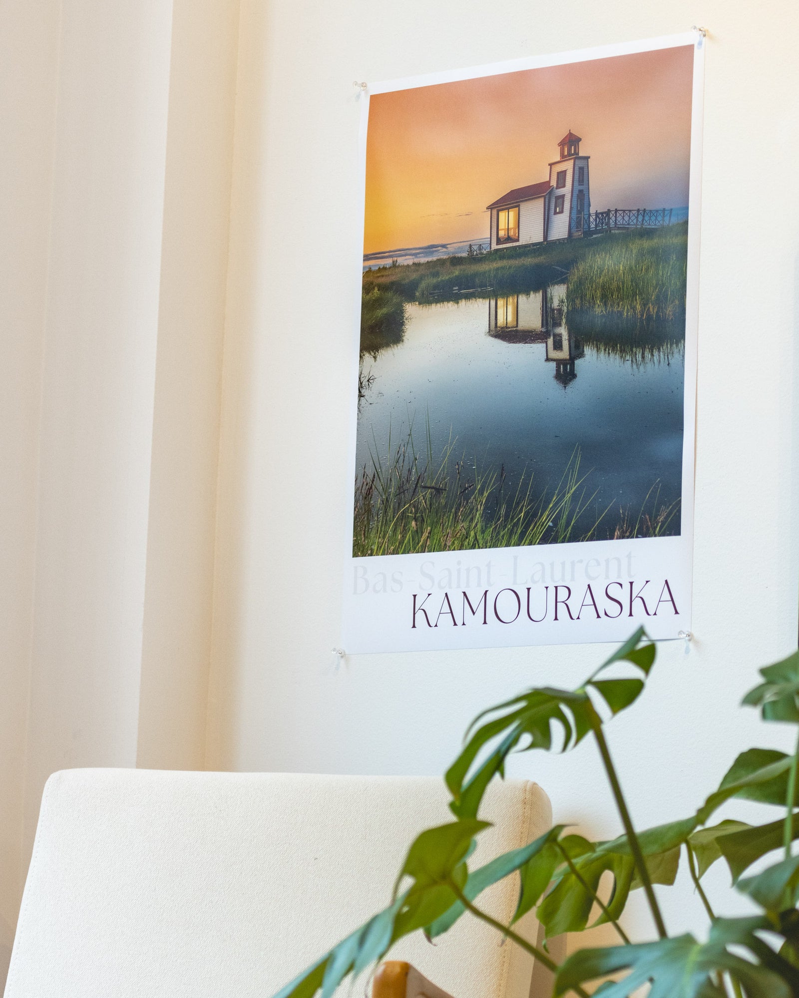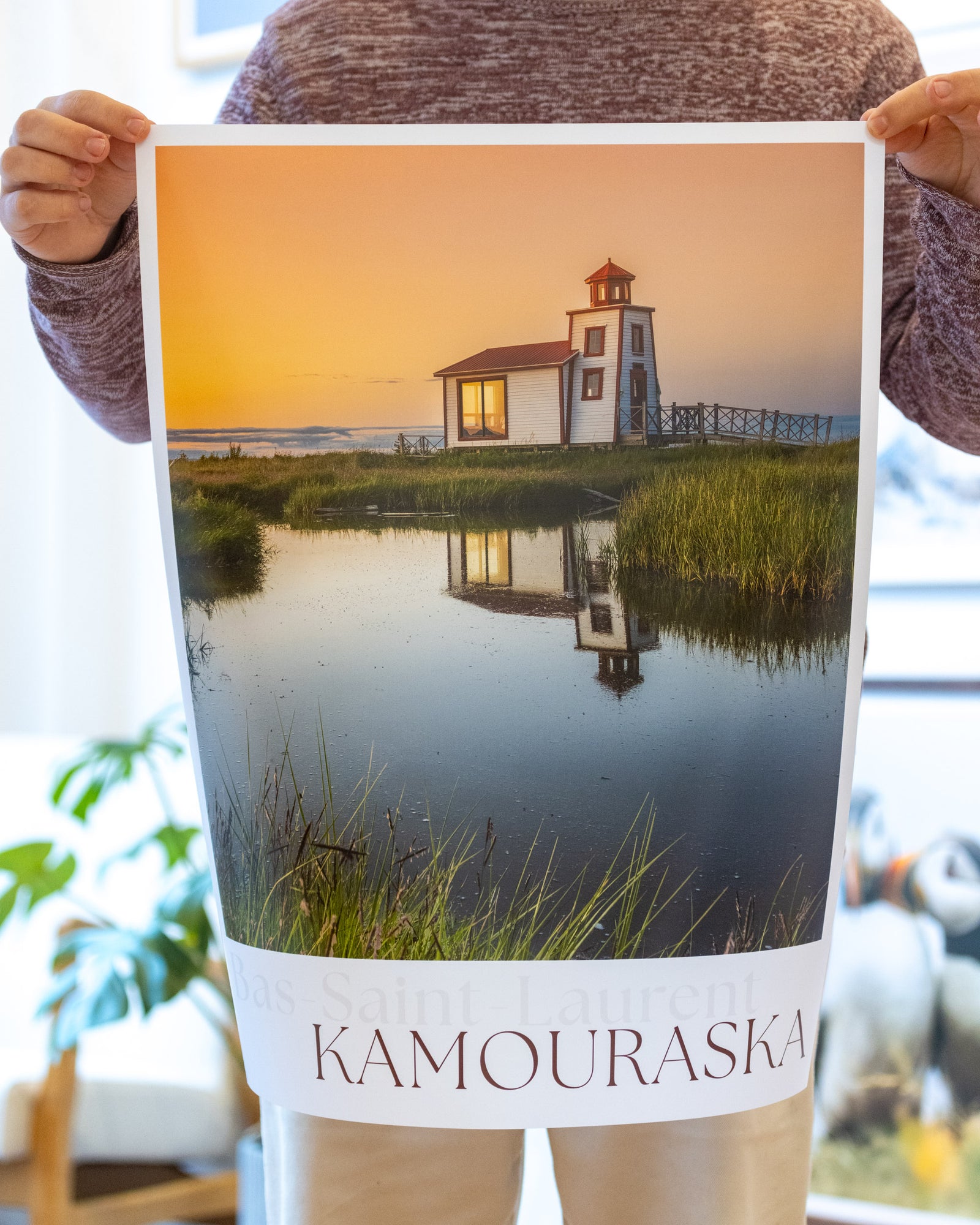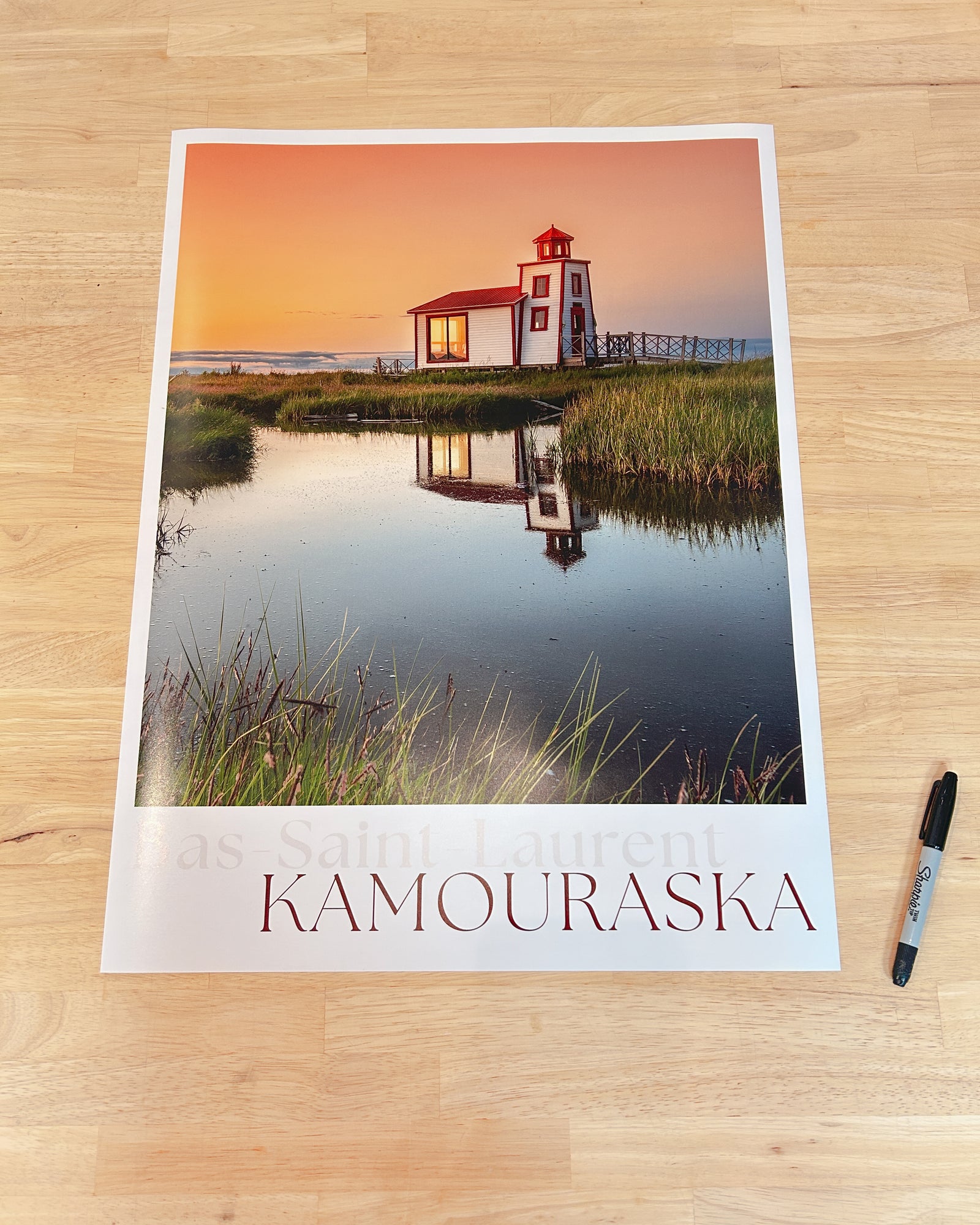 Photo poster in the colours of some of my favorite places in Quebec! Here, a typical Magdalen Islands landscape, the beach of Old Harry / Grande Échouerie!